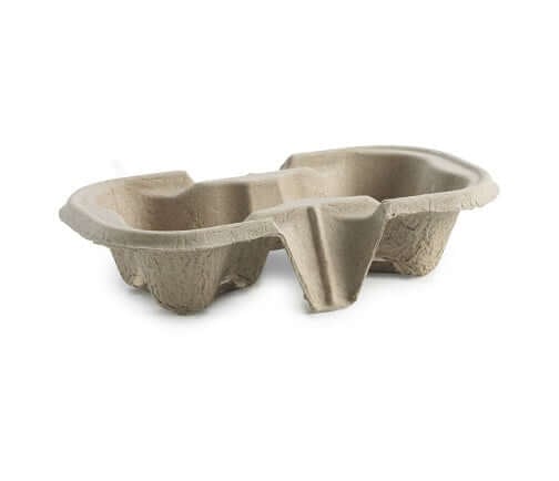 Moulded Pulp Fibre 2 Cup Carriers are biodegradable, compostable, and recyclable.