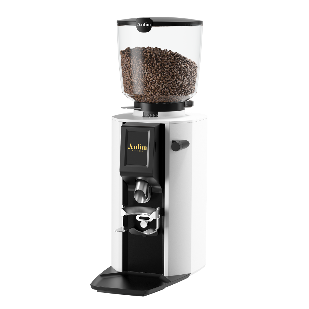 Introducing the all-new Alba, an integral part of Anfim’s latest portfolio. Crafted in Milan, Italy, Alba assures remarkable speed and precision through its cutting-edge 80 mm flat burrs. It offers an intuitive grinding experience for baristas, enhanced by an innovative 3.5-inch touchscreen display. This display seamlessly guides users through three programmable recipes, which can be secured for distinct user groups. It also serves as a hub for baristas to monitor and delve into a wide array of statistical usage metrics related to the grinder.