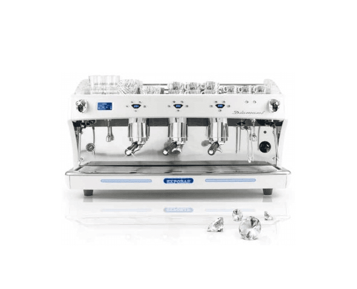 Retaining a traditional style espresso coffee machine with 3 groups, the Diamant also boasts an electronic switchboard to control the coffee dosages volumetrically, automatic water filling and a premium copper boiler. Skillfully created by experienced staff from factories in Sweden and Spain, this coffee machine is ready to meet any espresso challenge. The Expobar Diamant coffee machine has a wide range of colours to customise the design of your espresso machine (please note that the back of the machine is always in stainless steel).