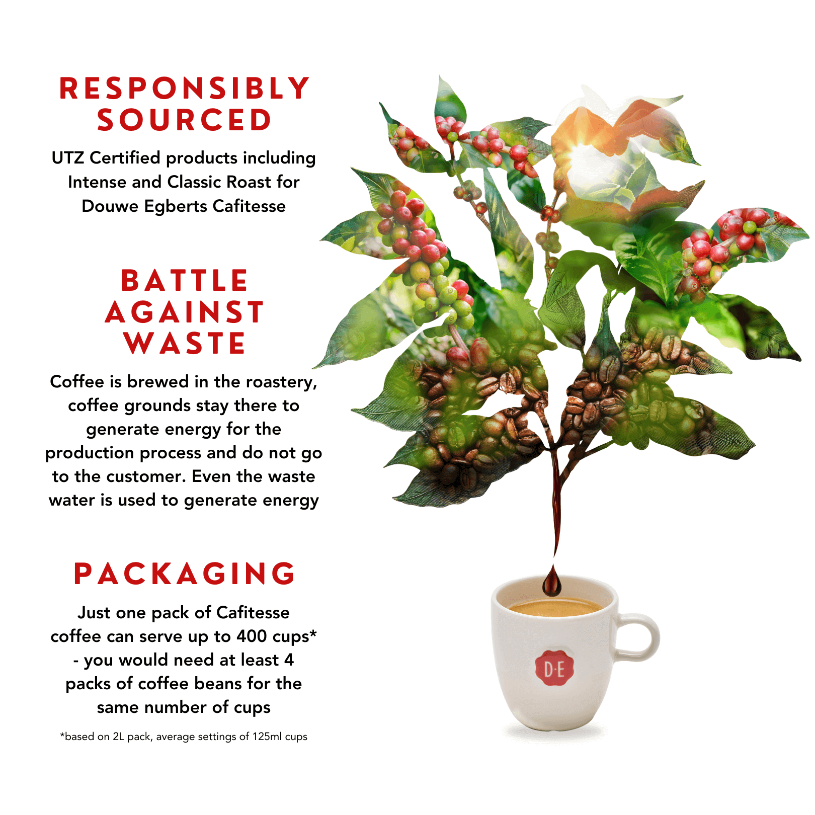 Frozen For Freshness – Cafitesse is a liquid coffee-extract made from the highest quality beans. To ensure the freshest tasting coffee in every cup, Douwe Egberts liquid roast coffee is made with only the finest coffee beans and filtered water to make an infusion, which is then flash frozen to seal in the flavour.
