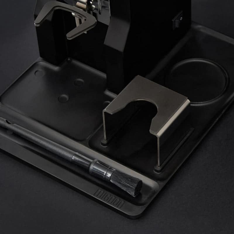 This handy Eureka Mignon Mat Kit is ideal for protecting your kitchen or coffee shop counter top when tamping and for keeping your grinder and tamping set up neat and tidy. Features indents perfectly sized for any Eureka Mignon grinder and for tamping, plus an integrated tamping stand and handy cleaning brush.