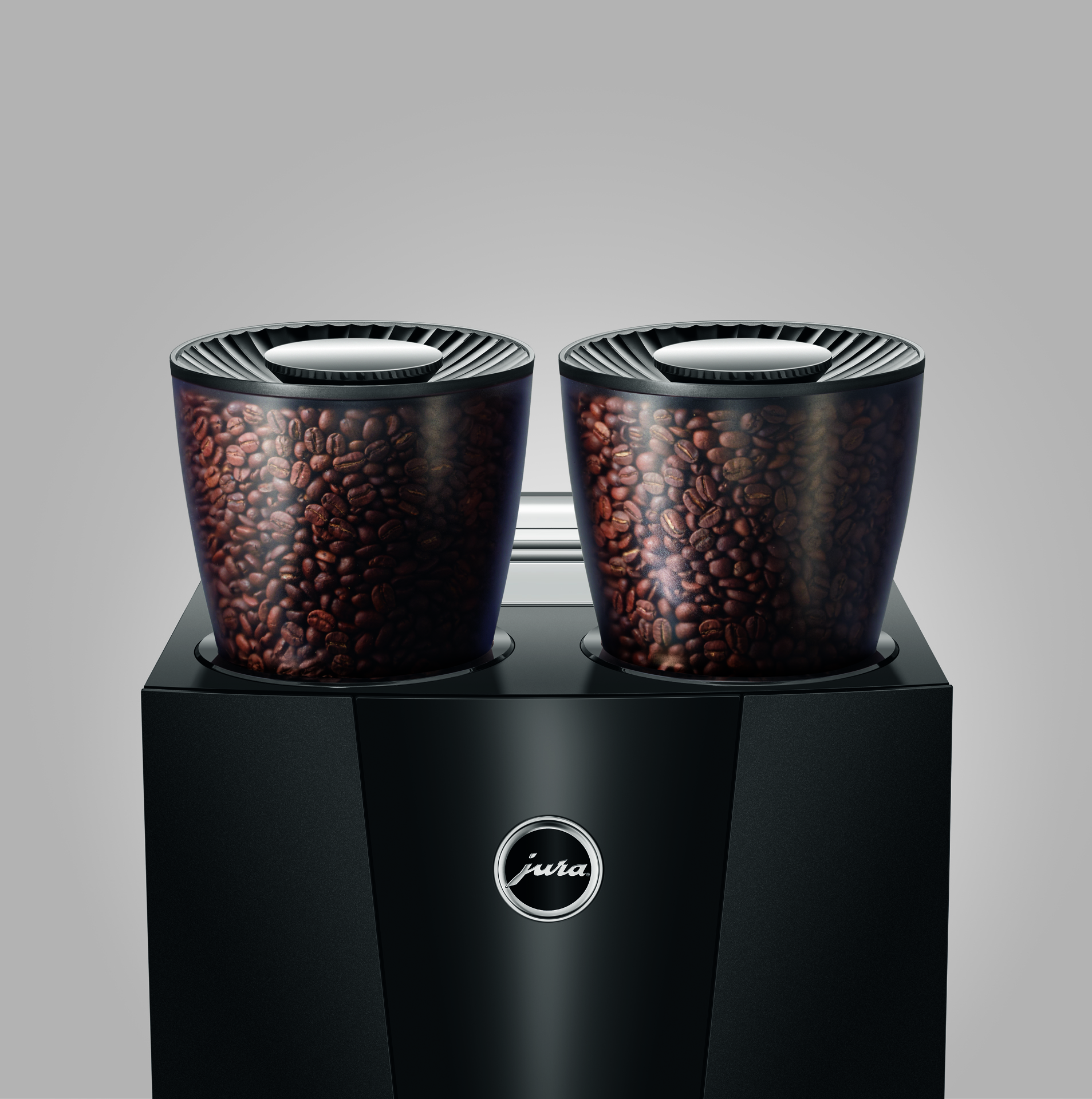 Two beans, one machine: dual bean hoppers and twin ceramic grinders for different roasts and drink styles.