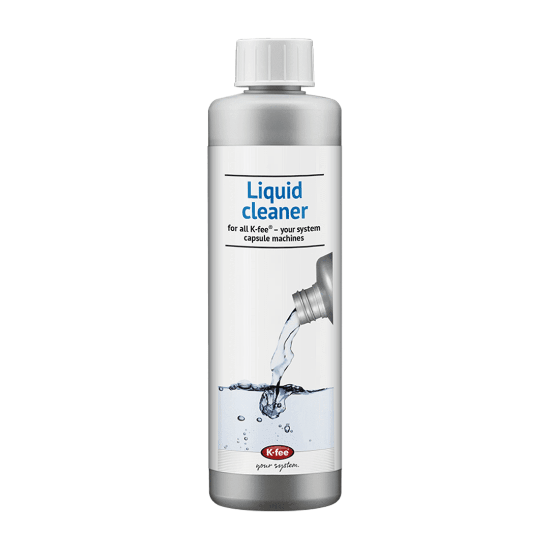 Enjoy the taste of your favourite K-fee beverages pure and natural. A clean machine is the prerequisite for this. Therefore, every K-fee capsule machine has a cleaning function. To clean the inside of your coffee machine, just put a cleaning solution in the water tank and start the cleaning cycle. This prevents the formation of stains and hard deposits. The ideal cleaning fluid for this is the Liquid Cleaner from K-fee.