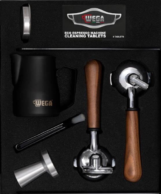 This Mini Black is sold as a package, which includes the machine, the M2E on demand grinder and a barista kit.