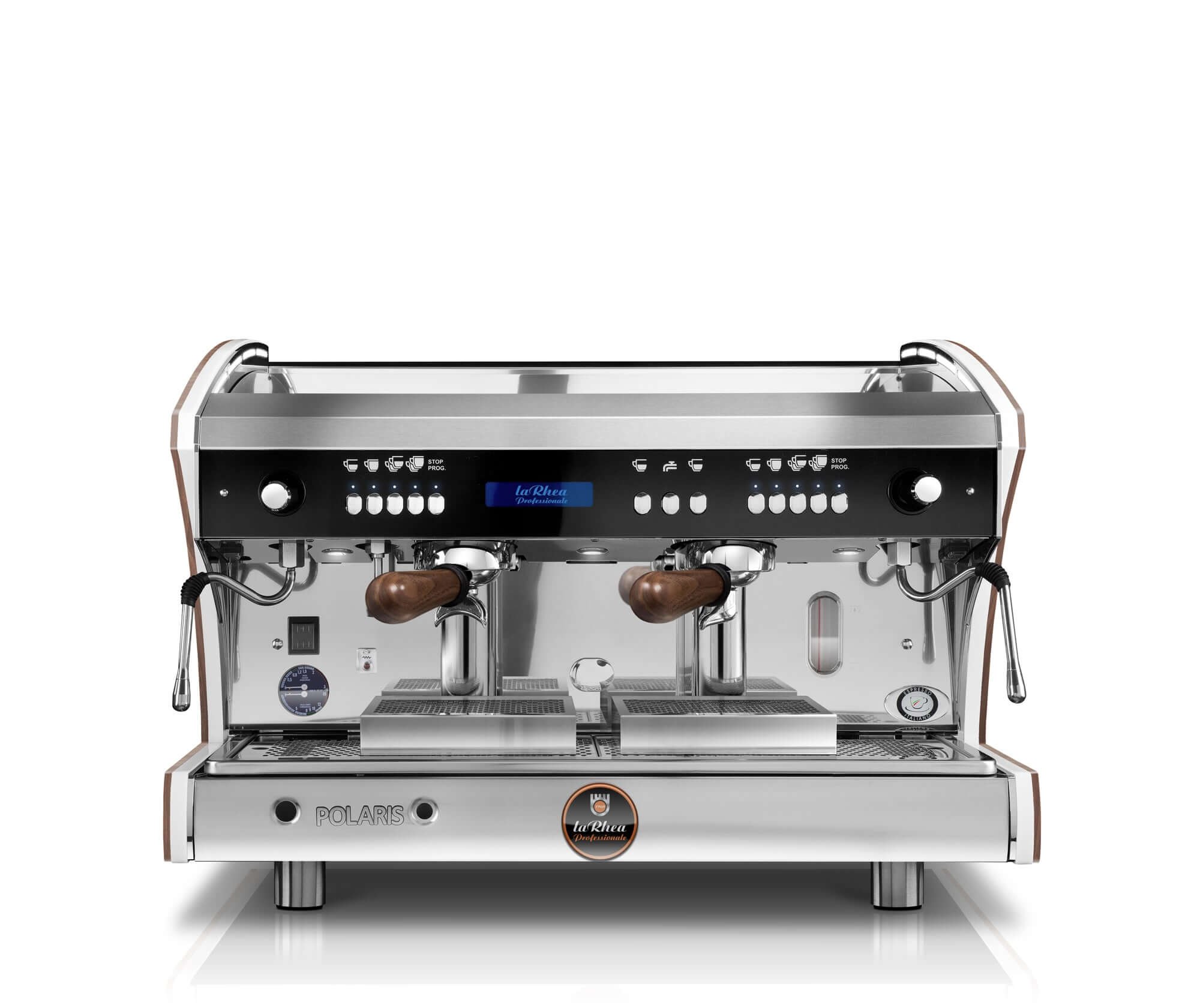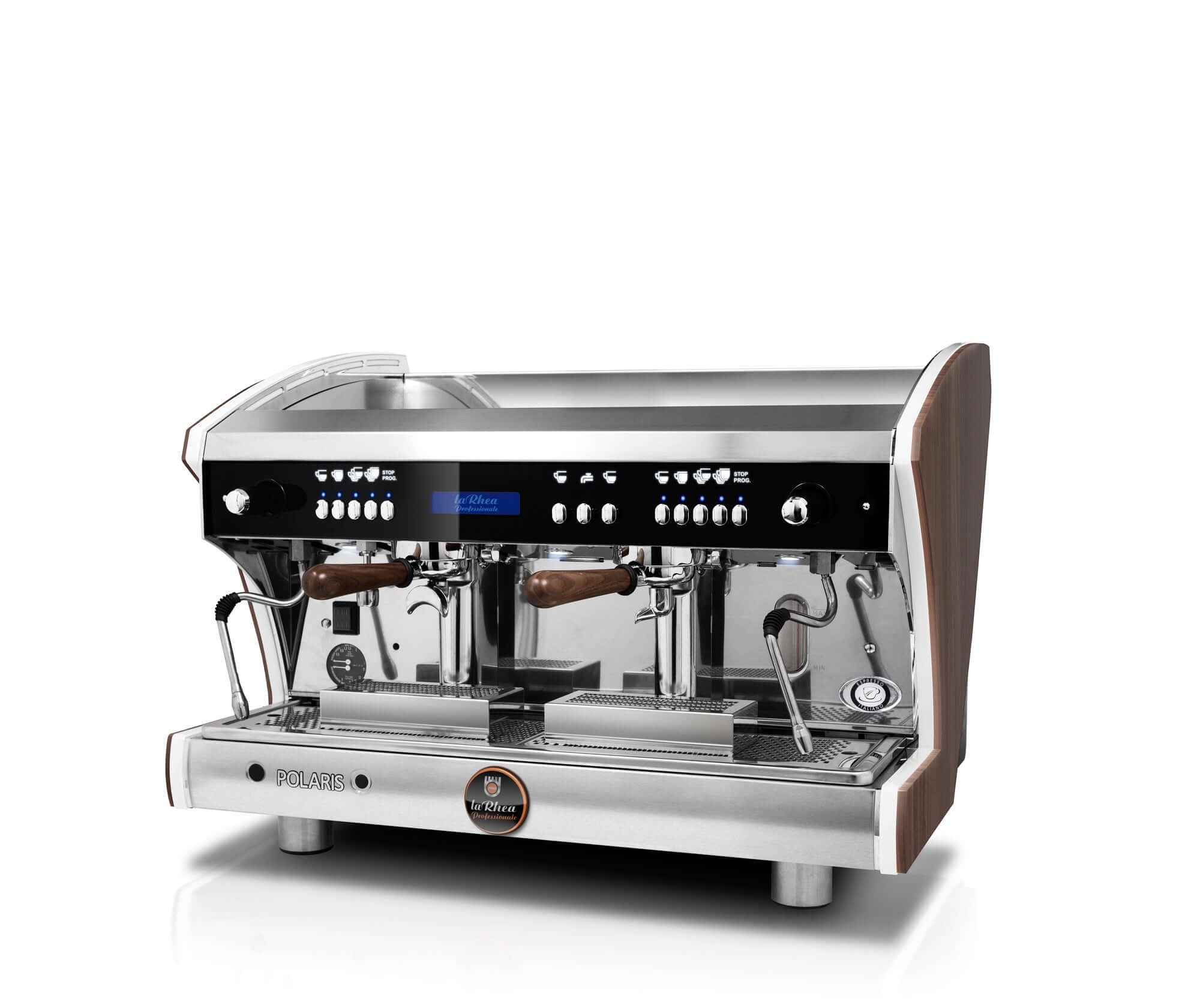 The laRhea Professionale Polaris is a full electronic coffee machine with an impressive range of programmable features that make a busy barista’s life a whole lot easier.