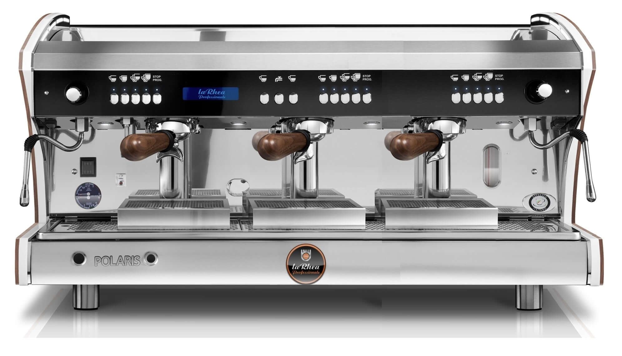 The laRhea Professionale Polaris is a full electronic coffee machine with an impressive range of programmable features that make a busy barista’s life a whole lot easier.