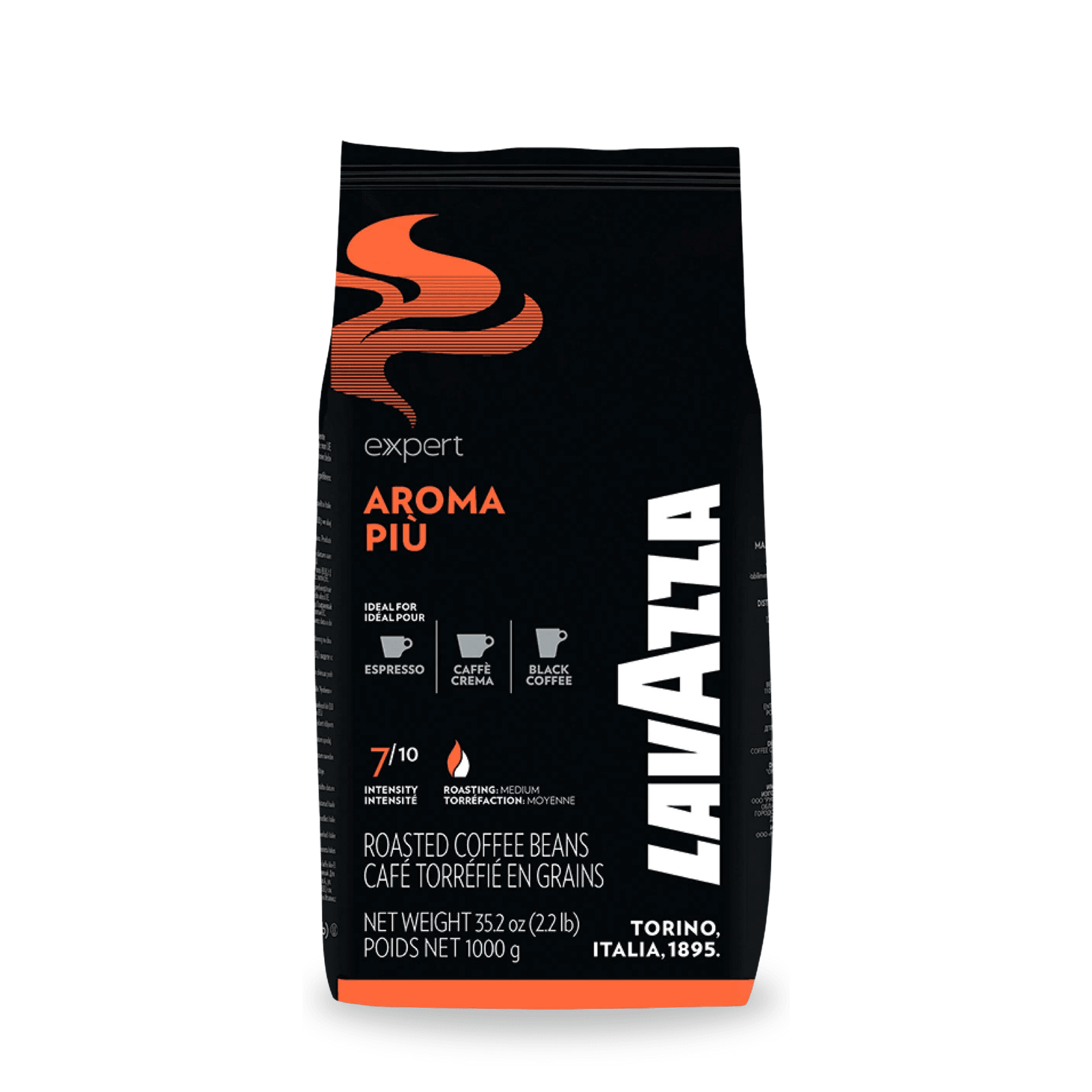 Lavazza Aroma Più coffee beans offer a velvety cream and a persistent aroma, from a blend of coffees. Enjoy scents of honey and almond for a sweet, creamy espresso.