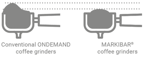 On Demand – Maximum freshness of freshly ground coffee. Coffee is ground when the 1 or 2 coffee porta-filter requests it.