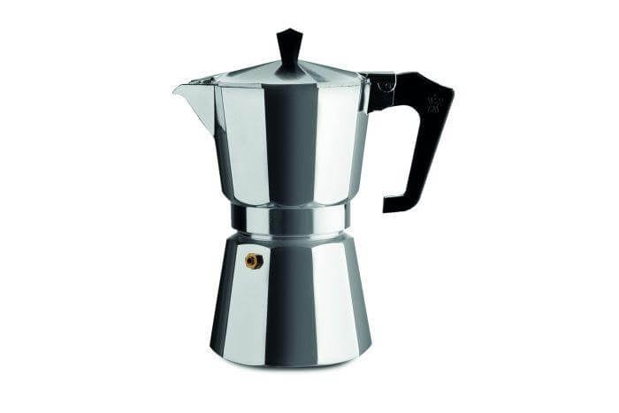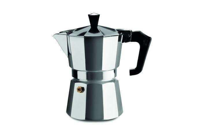 High quality Moka Pot made for crafting traditional Italian espresso. The Moka Pots eight sided shape diffuses heat evenly to enhance the aroma and taste of the coffee.