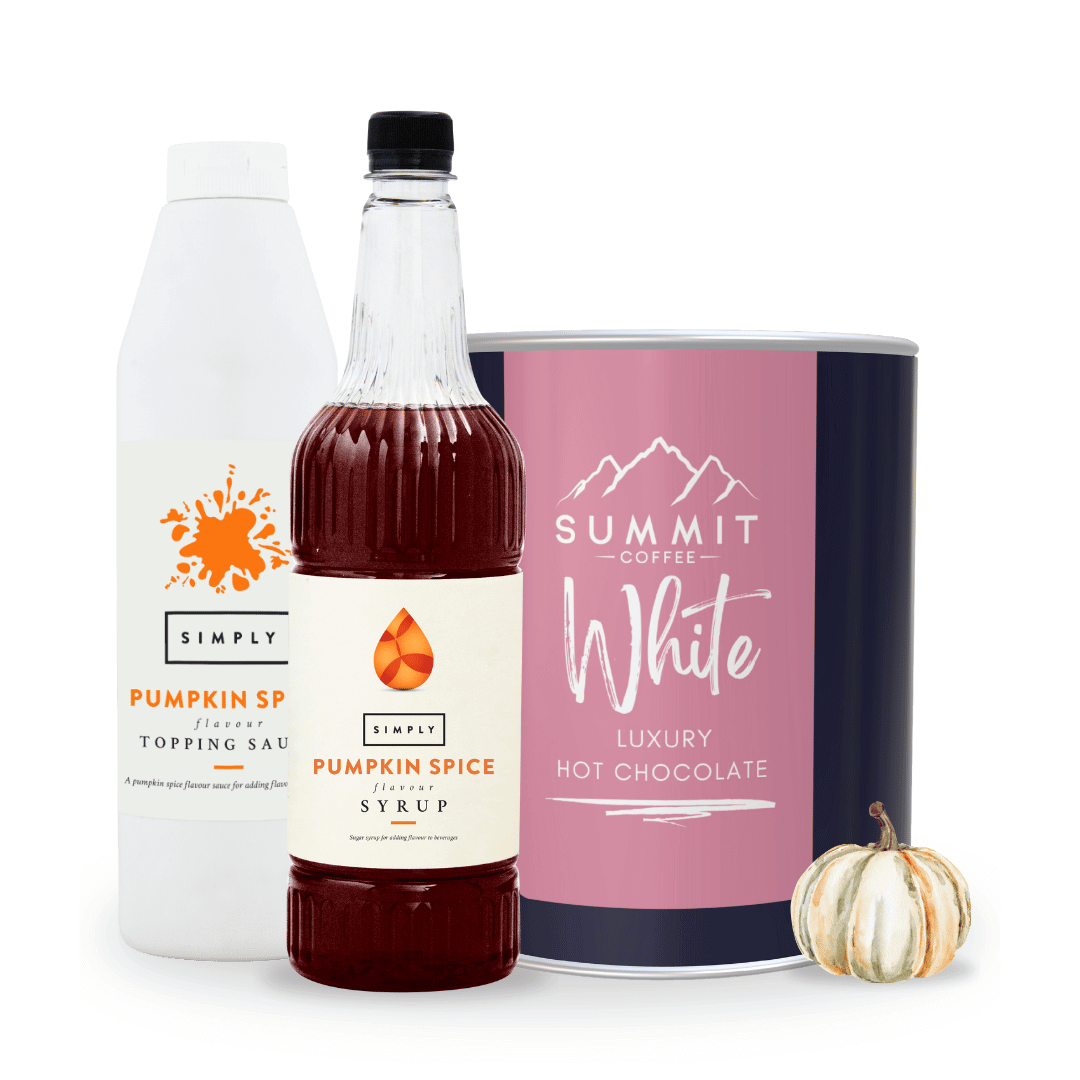 Pumpkin Spice season has officially landed! We’ve put together a delicious autumnal package for you to create Pumpkin Spice White Hot Chocolates. Add this to your drinks menu this Autumn and watch them fly out the door!Â