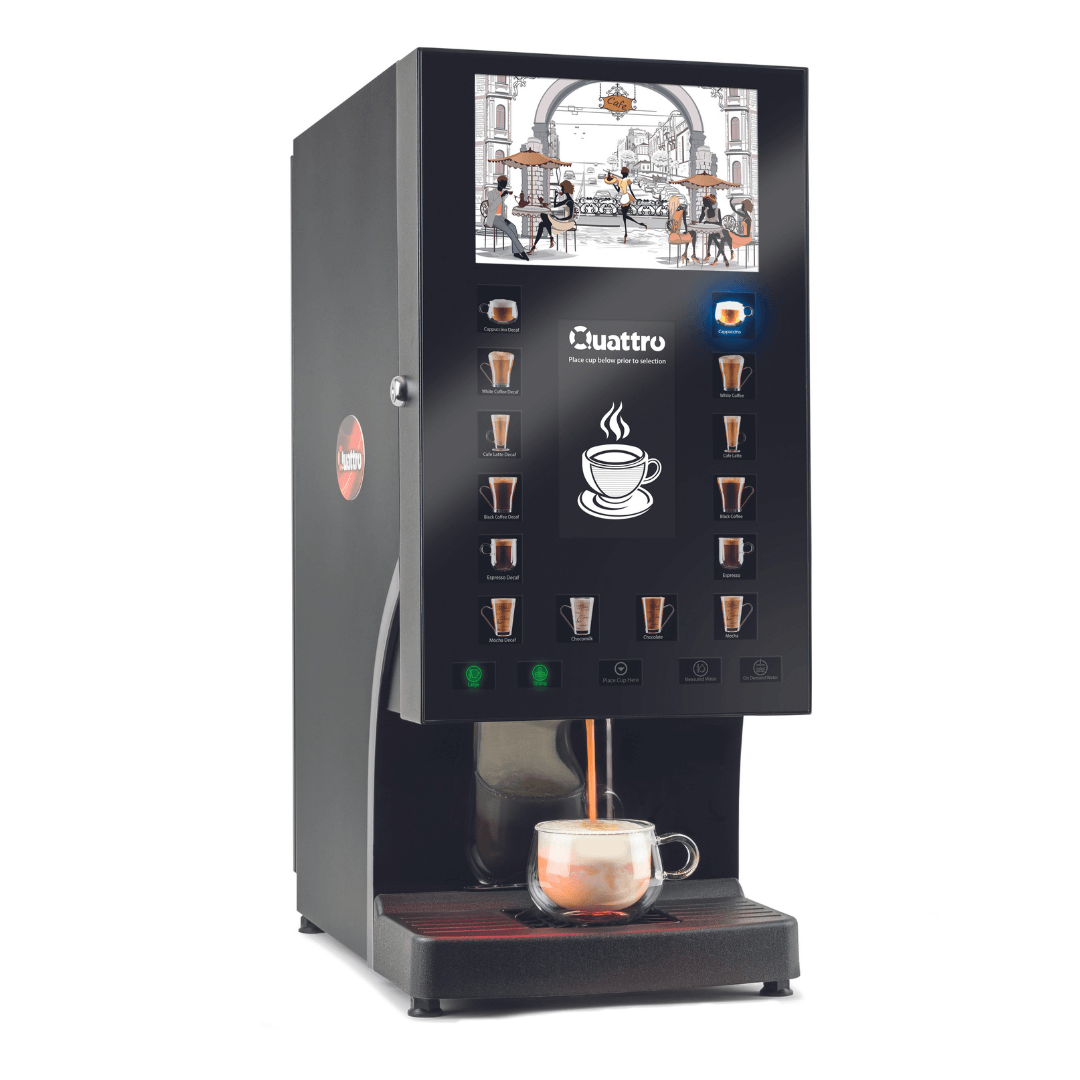 Introducing the Quattro, a remarkable state of the art soluble coffee machine. Taking a huge step forward in the soluble market, this fantastic machine offers crisp, clear HD screen technology, unrivalled versatility and features – all in a compact unit of just 29cm wide.