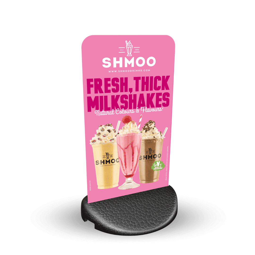 Introducing the Shmoo Double-Sided Pavement Sign, featuring a rubberised base for stability and designed to enhance customer attraction and boost sales of Shmoo milkshakes.