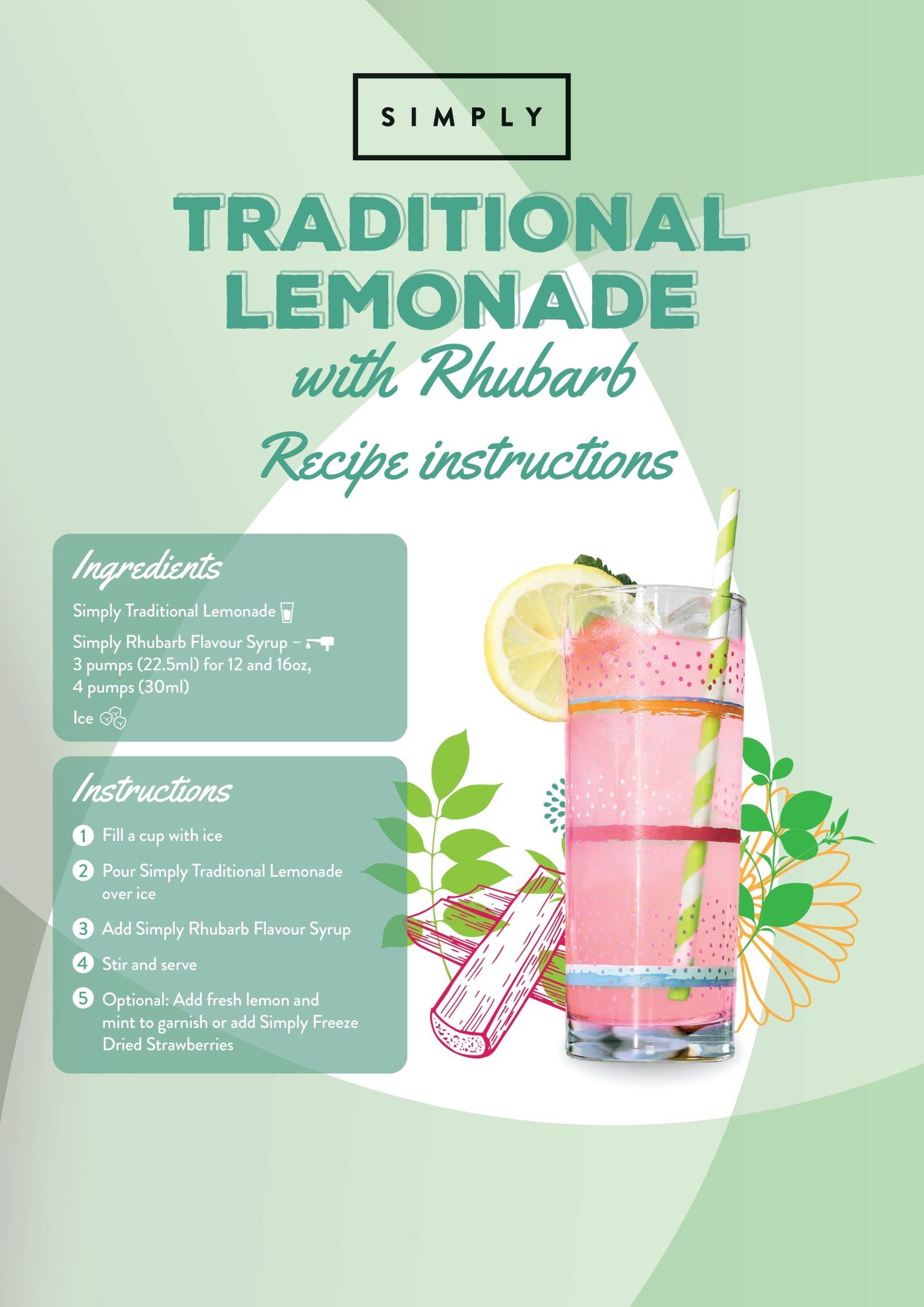 Simply Rhubarb Syrup is the perfect blend of sharp and sweet for adding a fruity zing to cocktails and mocktails. This syrup also works beautifully in lemonades, frappes and coolers, but it also makes a great addition to white hot chocolate for something a bit warmer.