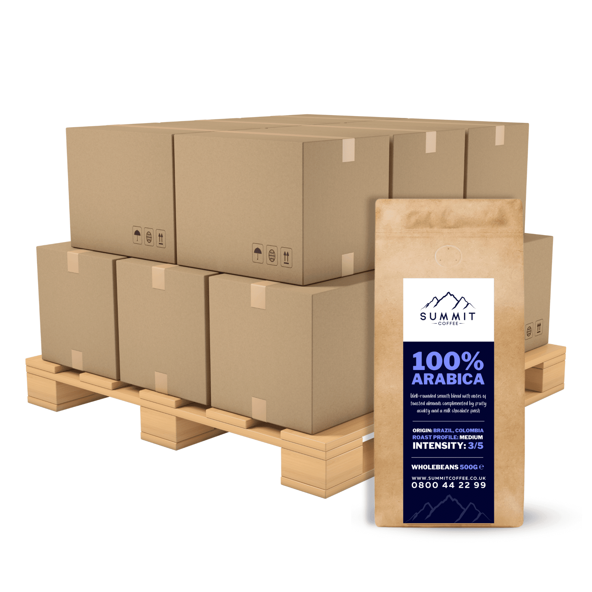 SAVE with our bulk buy options! Our 100% Arabica is a well-rounded smooth blend with notes of toasted almonds, complemented by fruity acidity and a milk chocolate finish.