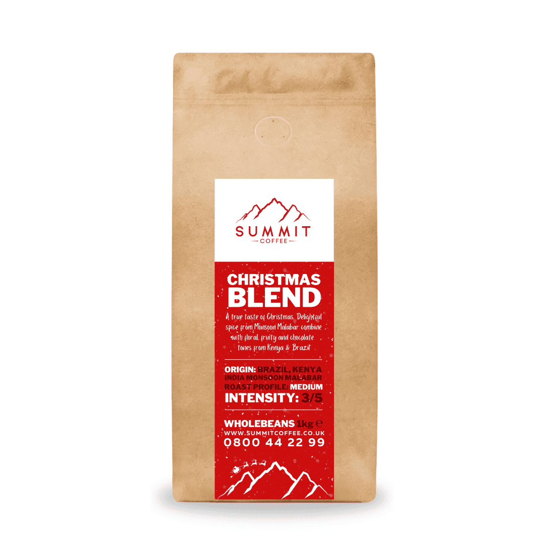 Introducing our NEW Summit Christmas Blend. Selected from 100% Arabica Beans from Kenya, Brazil and India Monsoon Malabar, this festive blend offers delightful spice from Monsoon Malabar and floral, fruity and chocolate tones from Kenya & Brazil.