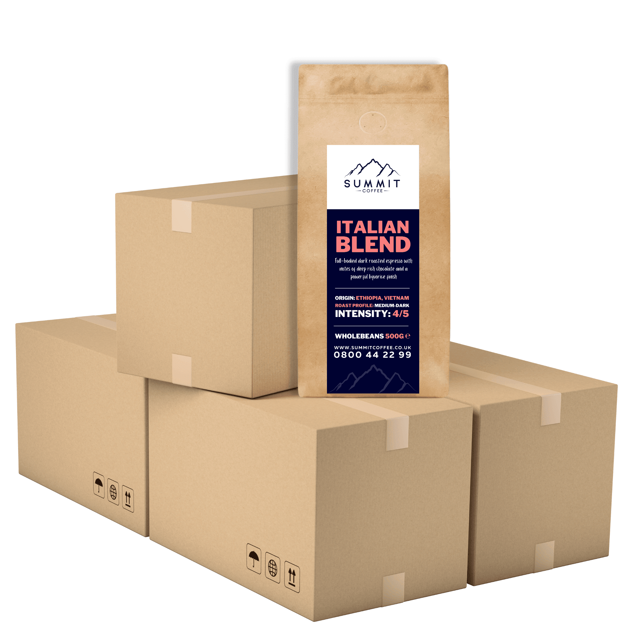 Our Summit Italian Blend is a full-bodied, powerful dark roasted espresso with notes of deep rich chocolate and a powerful liquorice finish.