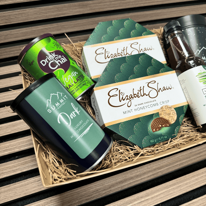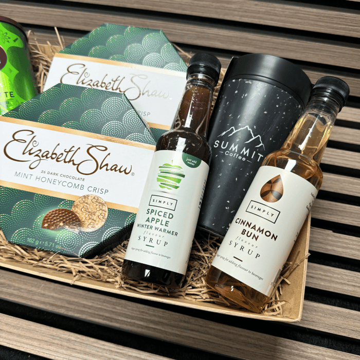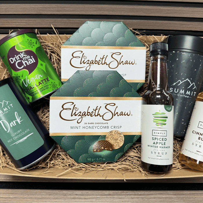 Experience the ultimate blend of spice and sweetness with our Vegan Chai and Chocolate Christmas Hamper. This thoughtfully curated collection features the fragrant Drink Me Chai Vegan Chai Latte, delectable Elizabeth Shaw Dark Mint Chocolate Crisps, rich Summit Dark Hot Chocolate Powder, and indulgent Simply Syrups. To top it off, enjoy your drinks in style with our eco-friendly Summit x Circular 12oz Reusable Coffee Cup.