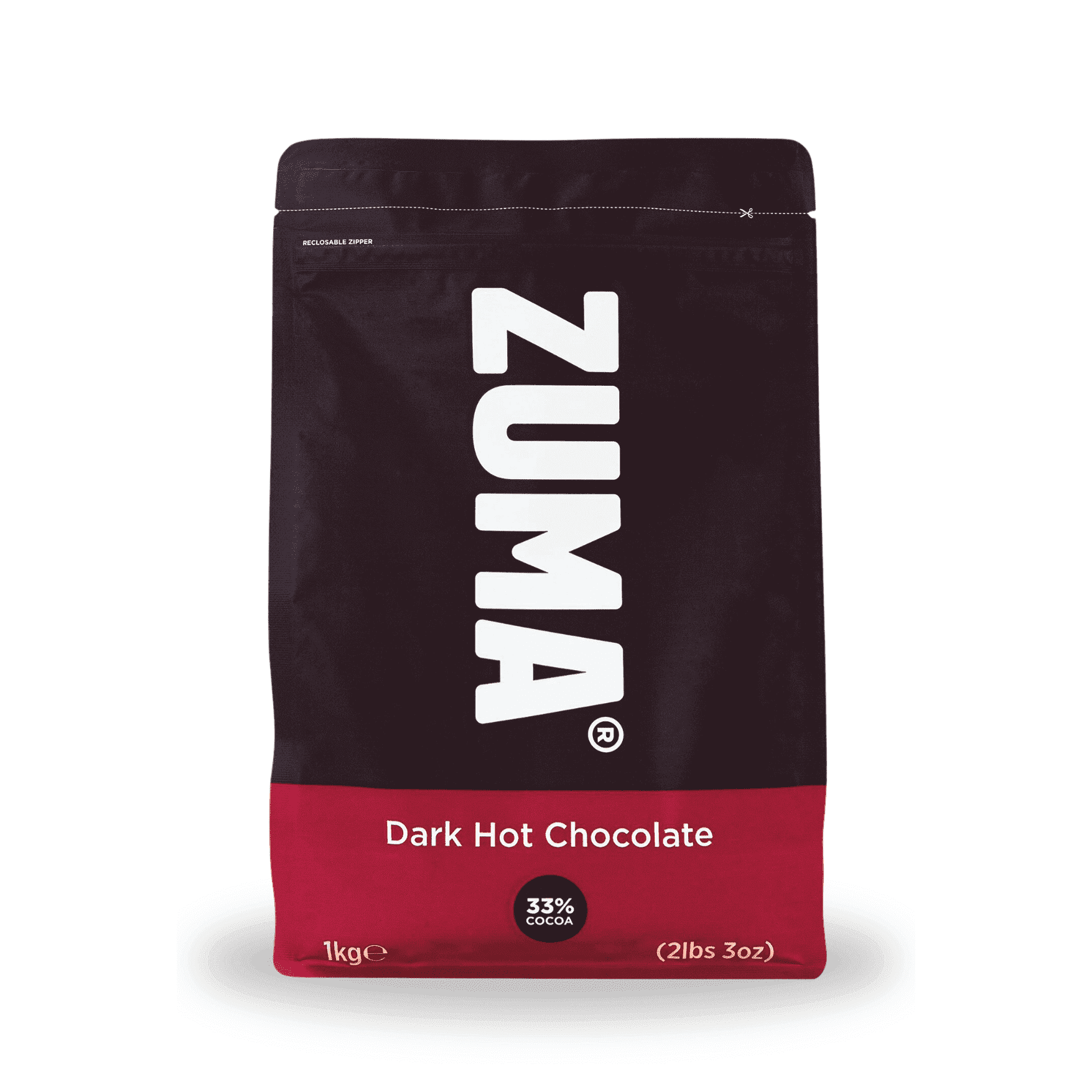 - Put 1 scoop (28g) Zuma Hot Chocolate powder into a 12oz cup
